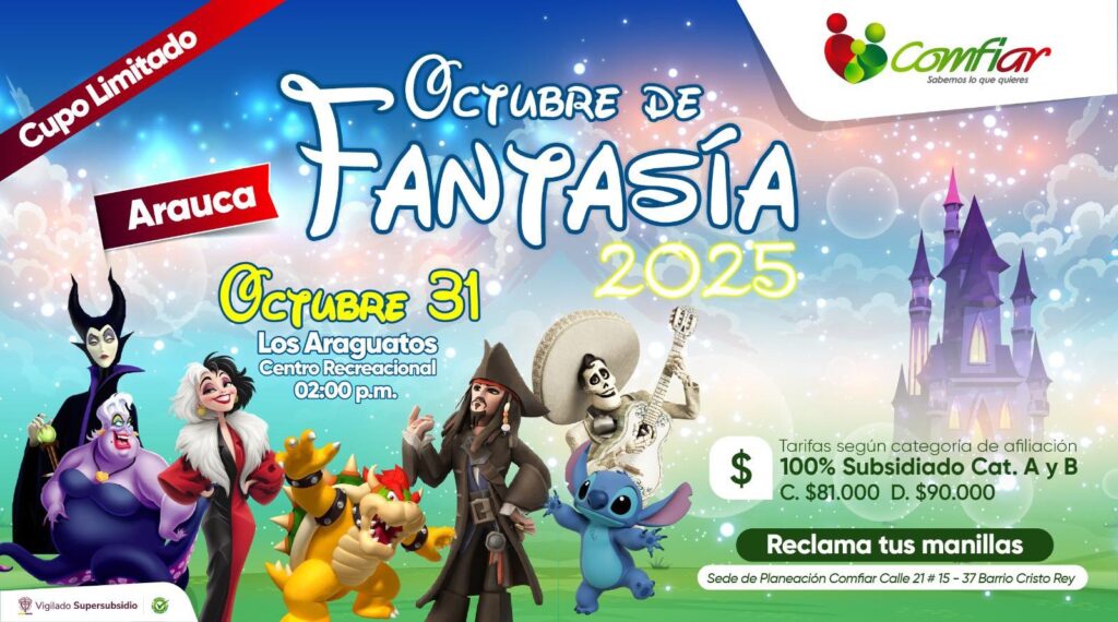 Todo listo para la celebración de una fecha especial más de la niñez junto a la Caja de Compensación Familiar de Arauca Comfiar, con el desarrollo de la actividad “Octubre de Fantasía”, un evento donde los niños y niñas serán los invitados especiales para esta exaltación.